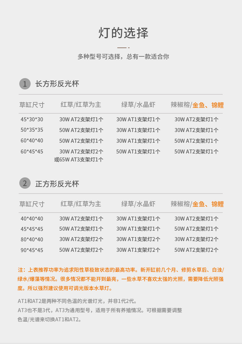 - Đèn NetLea AT3 PRO 40W: Phù hợp bể có chiều cao 45cm trở, bể 30 - 50cm. Nguồn điện: 100-240V/50-60HZ.