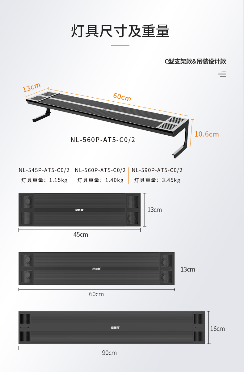 - Đèn Netlea AT5 C PRO 60cm - 75W: Phù hợp bể 60cm, máng nhôm - chân gác 45*13*2cm. Adapter: DC36w/2.5A