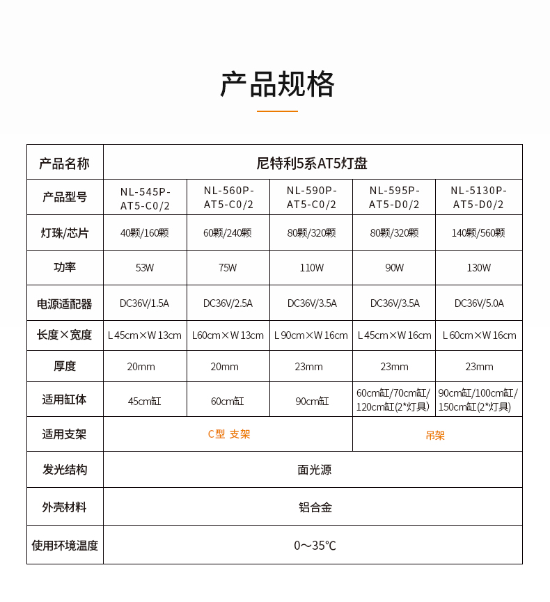 - Đèn Netlea AT5 C PRO 45cm - 55W: Phù hợp bể 45cm, máng nhôm - chân gác 45*13*2cm. Adapter: DC36w/1.5A