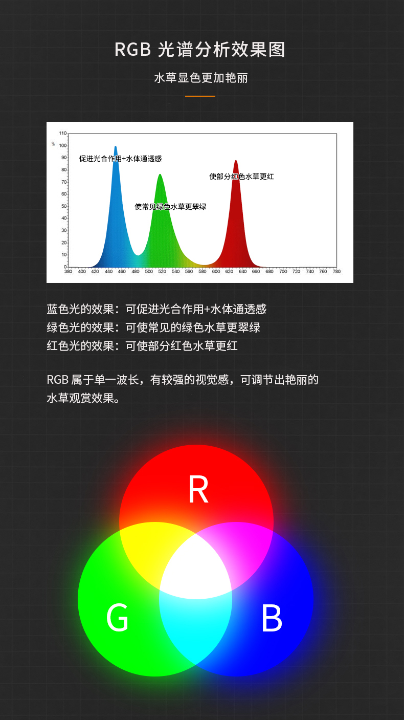 - Hệ số quang phổ ở đèn RGB ở chỉ số tốt, giúp cây thuỷ sinh lên được màu căng và rực rỡ.