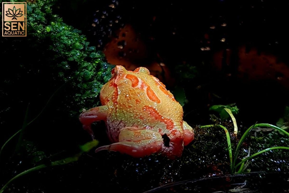 Cũng nên cung cấp một bát nước cạn cho phép ếch uống và ngậm nước mà không bị chết đuối. Tùy thuộc vào độ ẩm của bể, ếch Pacman của bạn có thể dành nhiều thời gian trong bữa ăn dưới nước của chúng, vì vậy hãy trồng các loại cây thuỷ sinh xung quanh giúp ếch của bạn yên tâm hơn. Đĩa nước cũng cần ở nơi ấm hơn của lồng để nước không quá lạnh.