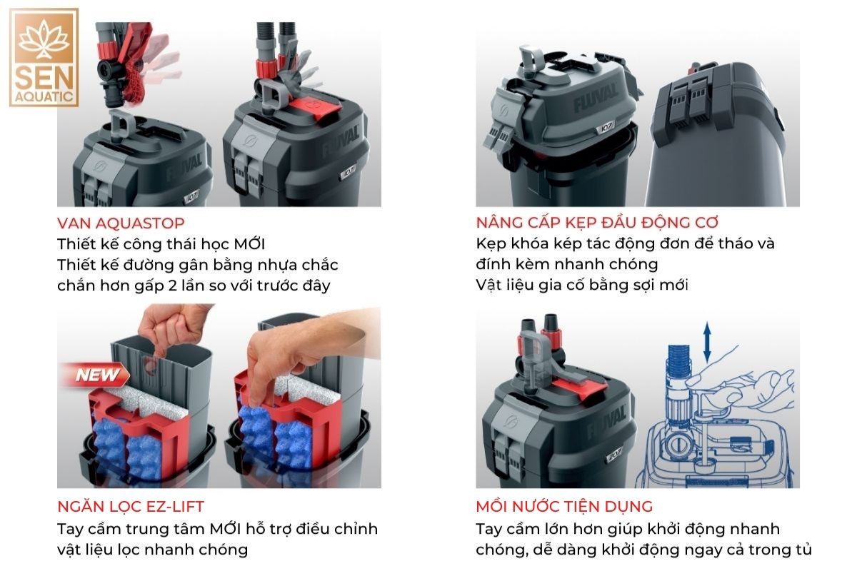 Series 07 đánh dấu sự nâng cấp thứ 7 trong 4 thập kỷ của dòng máy lọc thùng bán chạy nhất của Fluval trên toàn thế giới. Thế hệ mới nhất không chỉ kết hợp sức mạnh và độ tin cậy mà bạn đã mong đợi từ công ty hàng đầu trong lĩnh vực lọc thủy sinh mà còn có một số nâng cấp hiệu suất mới giúp máy hoạt động êm ái, mạnh mẽ và tiết kiệm năng lượng hơn bao giờ hết.