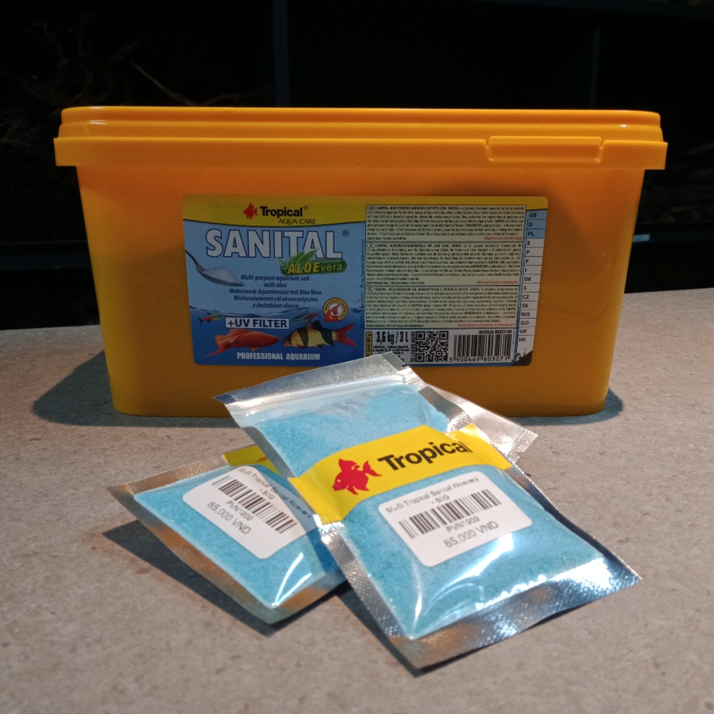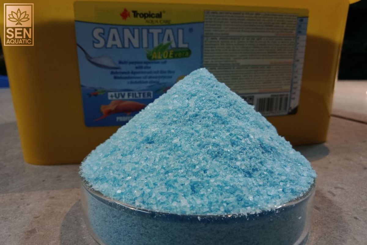Sanital Aloevera là một loại muối cá phát triển đặc biệt để sử dụng dự phòng và tắm cho cá sau khi vận chuyển cũng như trong suốt thời gian thích nghi được nhập khẩu nguyên hộp từ Ba Lan, Liên minh Châu Âu. Hiện sản phẩm đang được phân phối và bán lẻ tại Sen Aquatic.