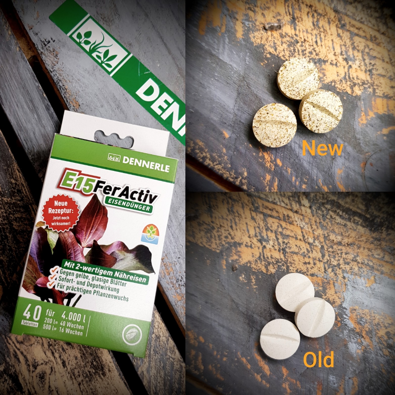 - Dennerle E15 FerActiv cung cấp cho tất cả các cây thủy sinh lượng sắt dinh dưỡng hóa trị hai mà chúng có thể sử dụng ngay lập tức, do đó đảm bảo màu xanh tươi đẹp.