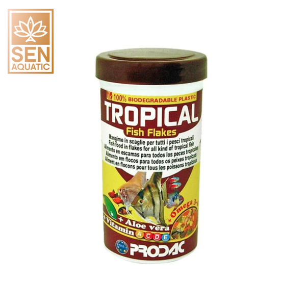 Prodac Tropical Fish Flakes cung cấp nguồn thức ăn hỗn hợp dạng mảnh cho tất cả các loại cá cảnh nhiệt đới. Sự pha trộn của các thành phần chất lượng cao tạo hệ dinh dưỡng cần thiết cho sự phát triển lành mạnh của cá nhiệt đới. Hiện sản phẩm đang được phân phối và bán lẻ tại hệ thống showroom Sen Aquatic.