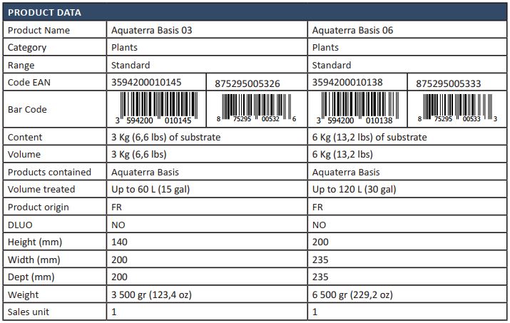 AquaTerra Basis được cấu thành từ cát hữu cơ, dolomite và Biovert Coal (Than từ tái chế chất thải thực vật).