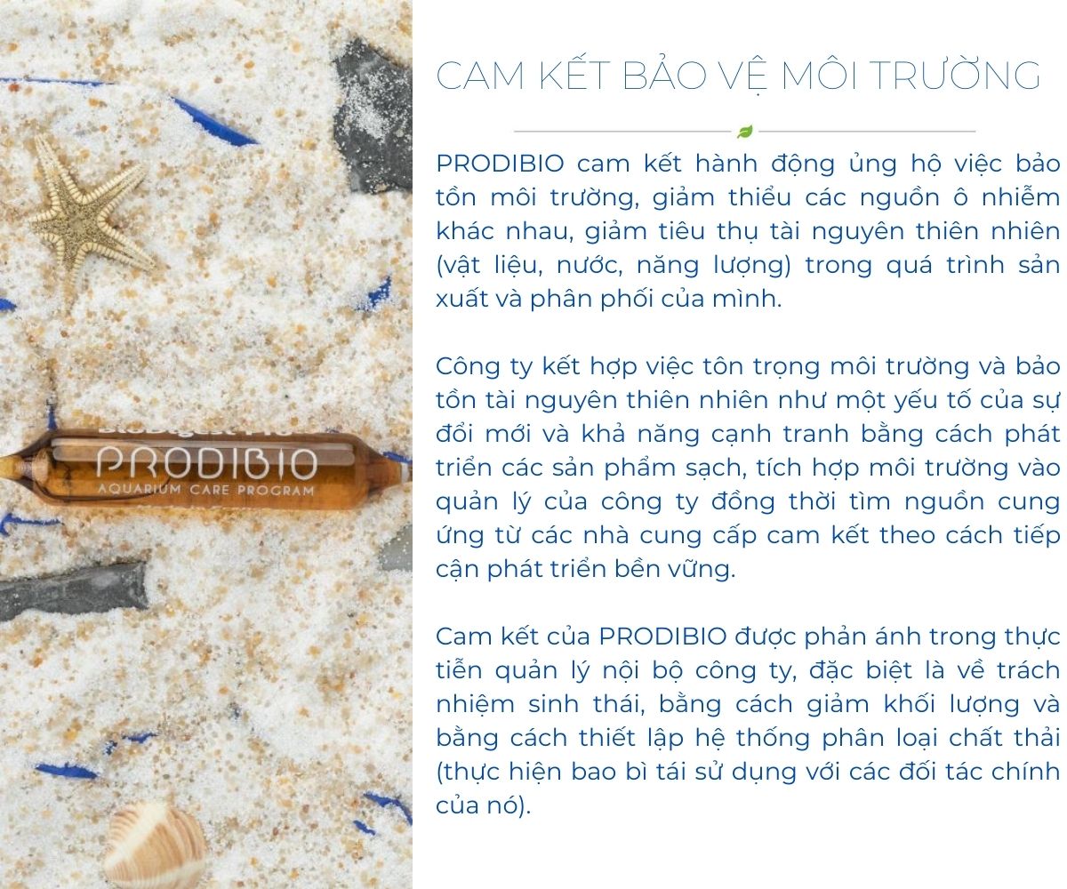PRODIBIO được thành lập tại Lyon, Pháp vào năm 1998 như một công ty thiết kế, phát triển, sản xuất và tiếp thị các dòng sản phẩm chăm sóc và điều trị thủy sinh vật. Kể từ khi được Nicolas Tiliacos (Tiến sĩ Hóa học hữu cơ) mua lại vào năm 2006 và chuyển đến Marseille, PRODIBIO đã củng cố quy mô quốc tế của mình. Hoạt động của công ty đã tiếp tục phát triển cả về doanh thu và số lượng người chơi chuyên nghiệp tin tưởng để đồng hành.