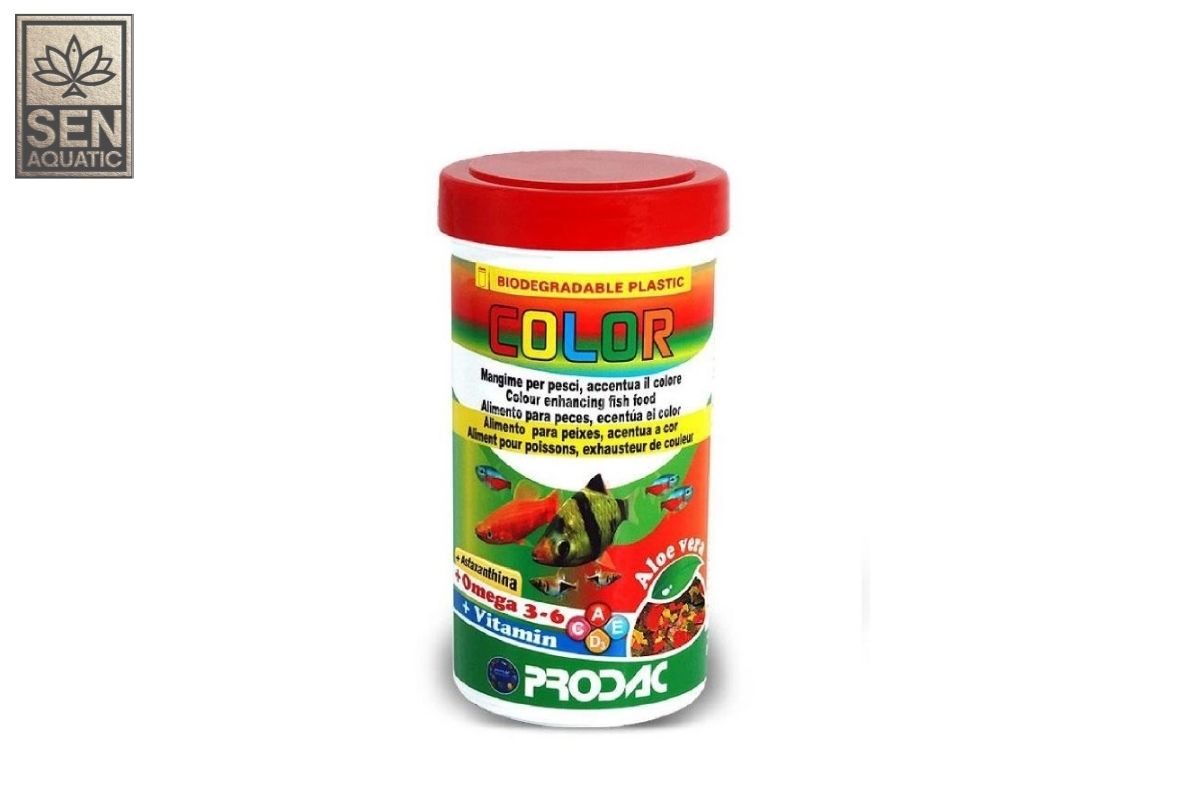 Thức ăn hỗn hợp dạng mảnh Prodac Color dùng cho tất cả các loại cá cảnh nhiệt đới được làm giàu với canthaxanthin, thành phần làm tăng màu sắc tự nhiên của dòng cá này. Hiện sản phẩm đang được phân phối và bán lẻ tại hệ thống showroom Sen Aquatic.